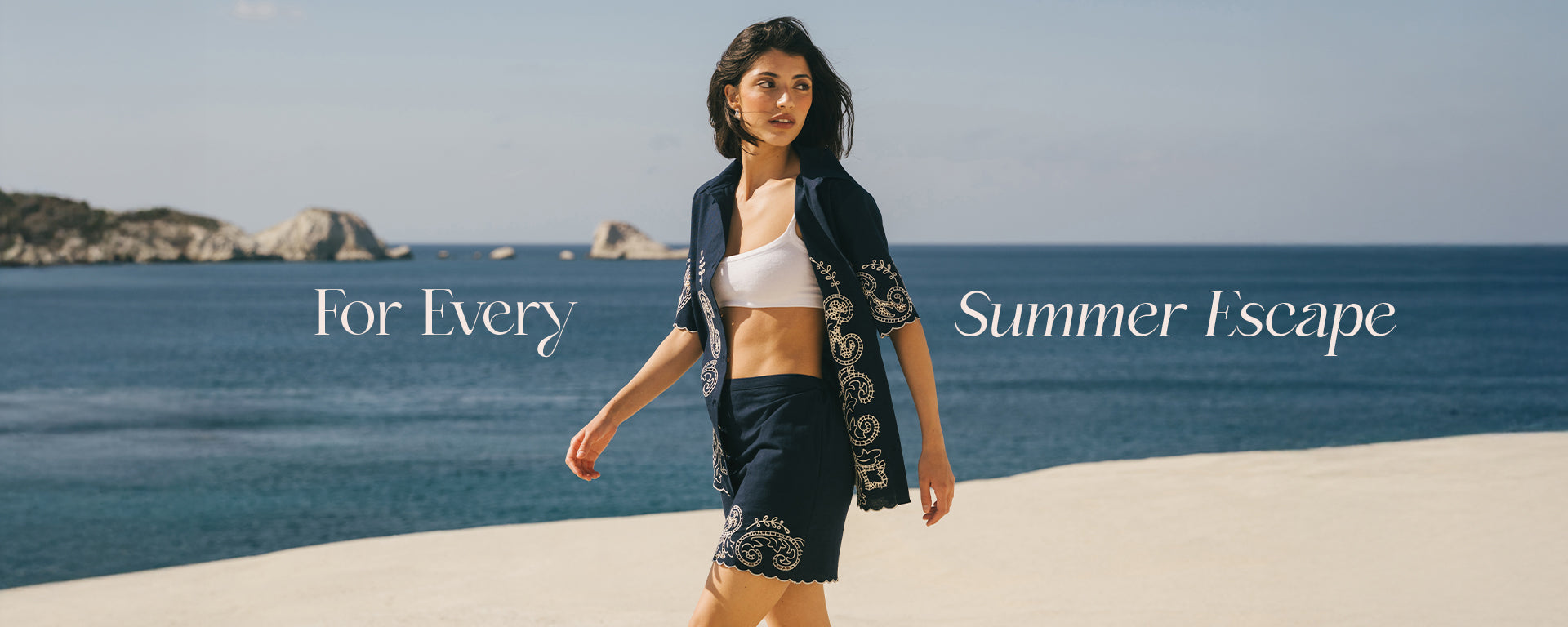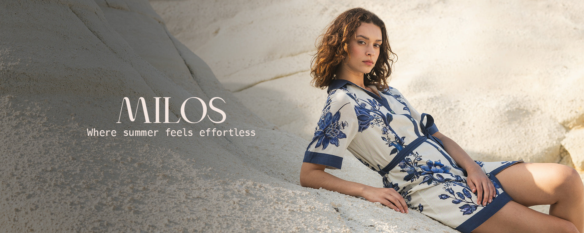 Inspired by the Greek island of Milos, this breezy resort collection features effortless silhouettes, lightweight fabrics, and sun-washed hues—perfect for carefree summer escapes.