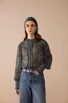 Chic and versatile, this sea-green botanical paisley blouse brings effortless sophistication to your wardrobe. Designed in lightweight chiffon for a soft, fluid drape, it’s perfect for both polished daywear and refined evenings.