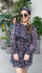 Feminine and refined, the Mehr Mini Dress is crafted in a botanical viscose chiffon print with scattered hand-embroidered motifs that add artisanal charm. Featuring long voluminous sleeves with smocked cuffs for ease and comfort, it strikes the perfect balance of elegance and wearability. A waist belt cinches the silhouette for a flattering fit, while the back keyhole closure adds a delicate finishing touch. Fully lined for comfort, this mini dress transitions seamlessly from day to evening.
