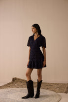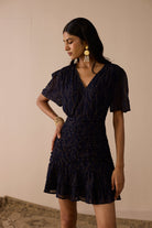 A chic mini dress featuring a flattering V-neckline and a beautifully ruched body that enhances the silhouette, finished with a slightly flowy bottom for a soft, feminine touch. The Skye Mini Dress is crafted in viscose georgette with subtle jacquard details, adding just the right amount of glam. Designed with a side zipper for closure and fully lined for comfort, this dress strikes the perfect balance between elegance and playfulness.
