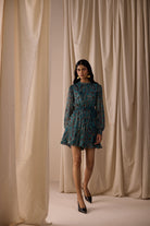 Feminine and refined, the Mehr Mini Dress is crafted in a paisley viscose chiffon print with scattered hand-embroidered motifs that add artisanal charm. Featuring long voluminous sleeves with smocked cuffs for ease and comfort, it strikes the perfect balance of elegance and wearability. A waist belt cinches the silhouette for a flattering fit, while the back keyhole closure adds a delicate finishing touch. Fully lined for comfort, this mini dress transitions seamlessly from day to evening.