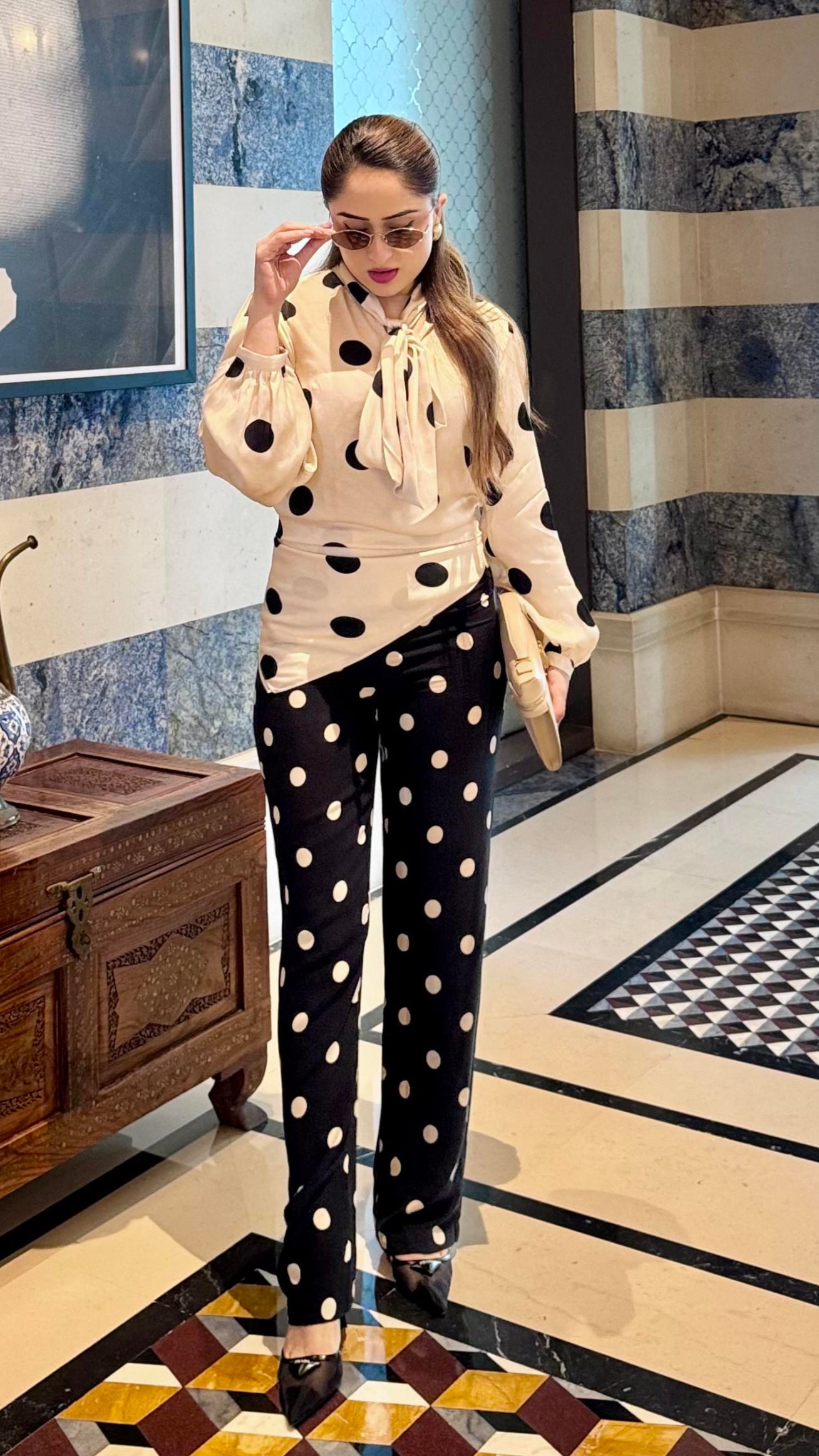 Polished yet playful, the Elegance Co-ord Set is a timeless take on classic polka dots with a modern twist. Designed in buttery-soft modal and viscose twill, this set pairs the chic Elegance Blouse with the tailored Glam Trouser—a duo that exudes sophistication while keeping comfort at its core.