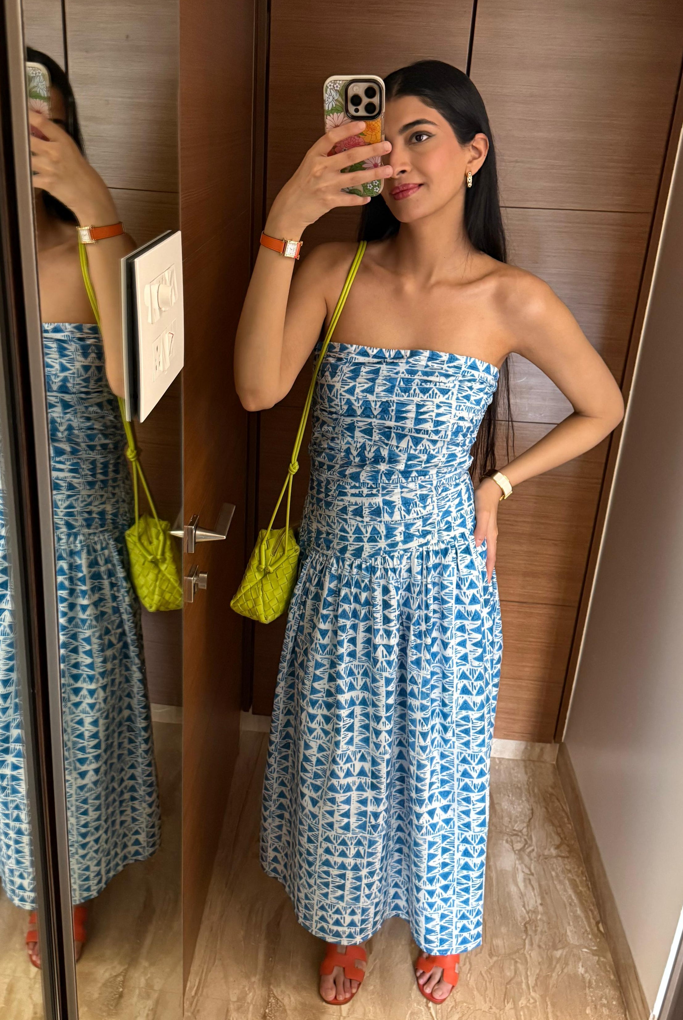 Our dresses are crafted using natural fabrics such as cotton, linen and soft viscose, chosen for their comfort and versatility in warmer climates. These materials allow garments to remain light and breathable while maintaining a polished and feminine silhouette.