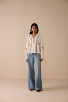 Effortlessly chic, the Aria Blouse is designed in crisp white with delicate embroidered detailing for timeless elegance. Featuring coconut shell buttons and a relaxed silhouette, it’s the perfect blend of comfort and style—ideal for elevating your everyday errands or casual outings.